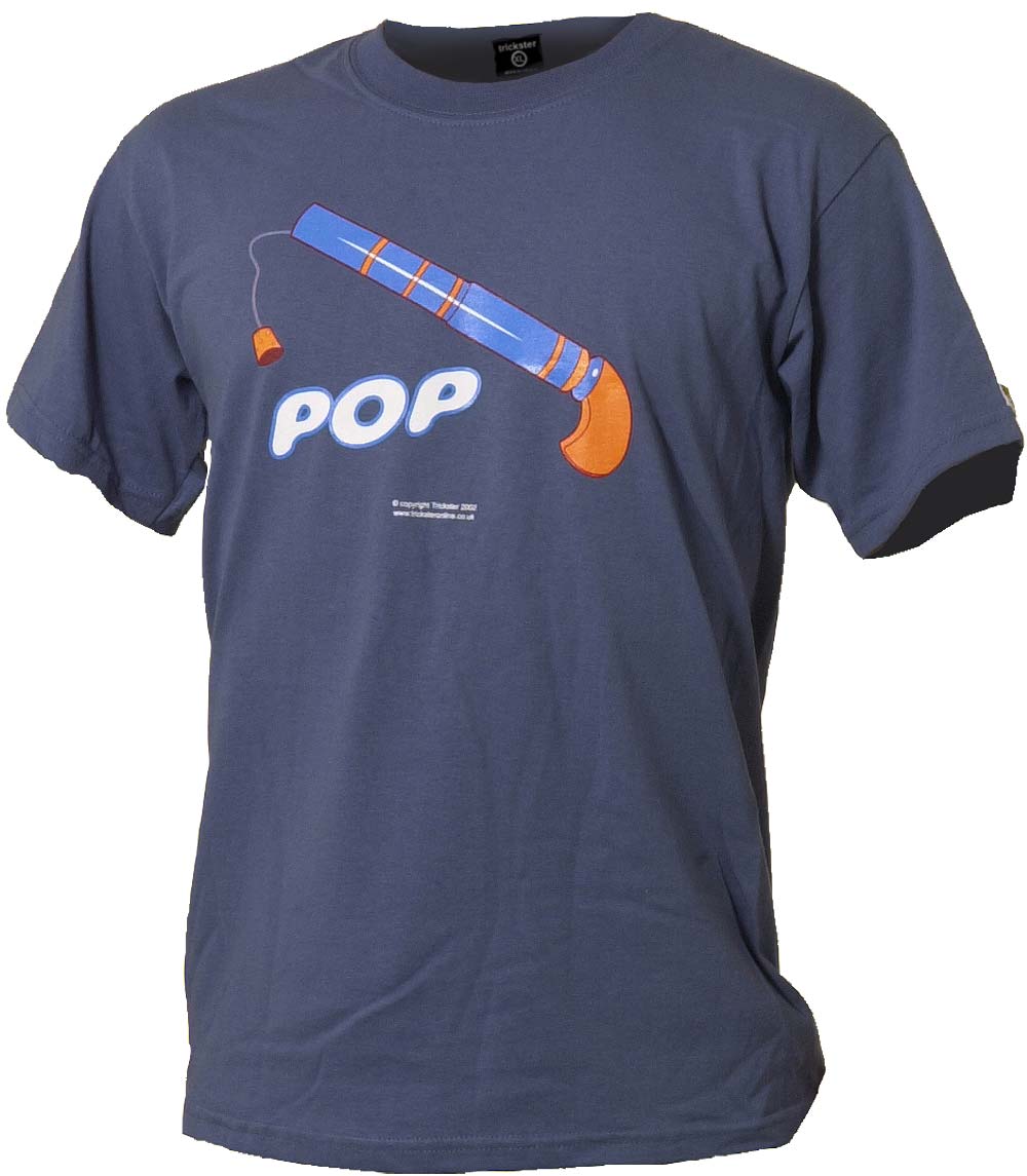 An Indigo Blue colour tee featuring a screenprinted popgun on the chest.