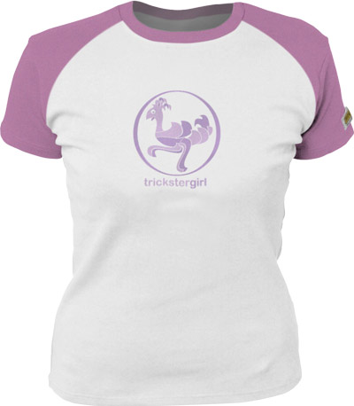 A two-tone ladies fitted tee featuring a screenprinted Trickstergirl logo on the chest. Also available as a white vest.