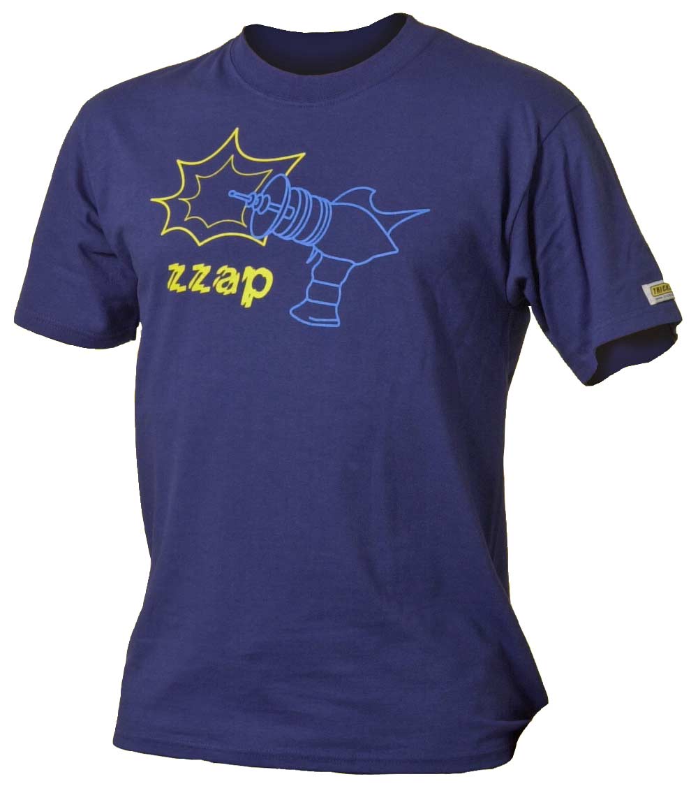 A Metro Blue colour tee featuring a screenprinted ray gun on the chest.